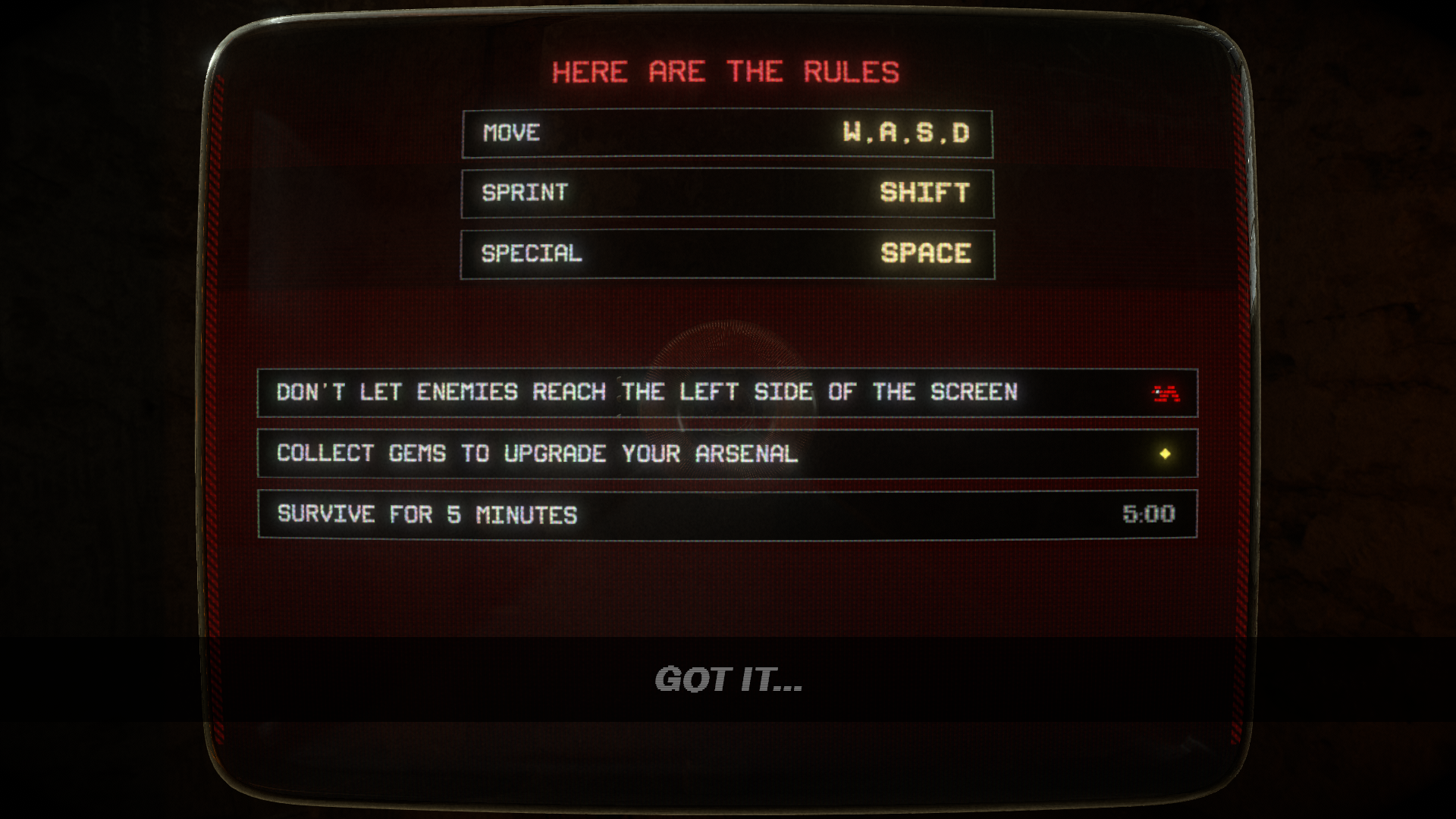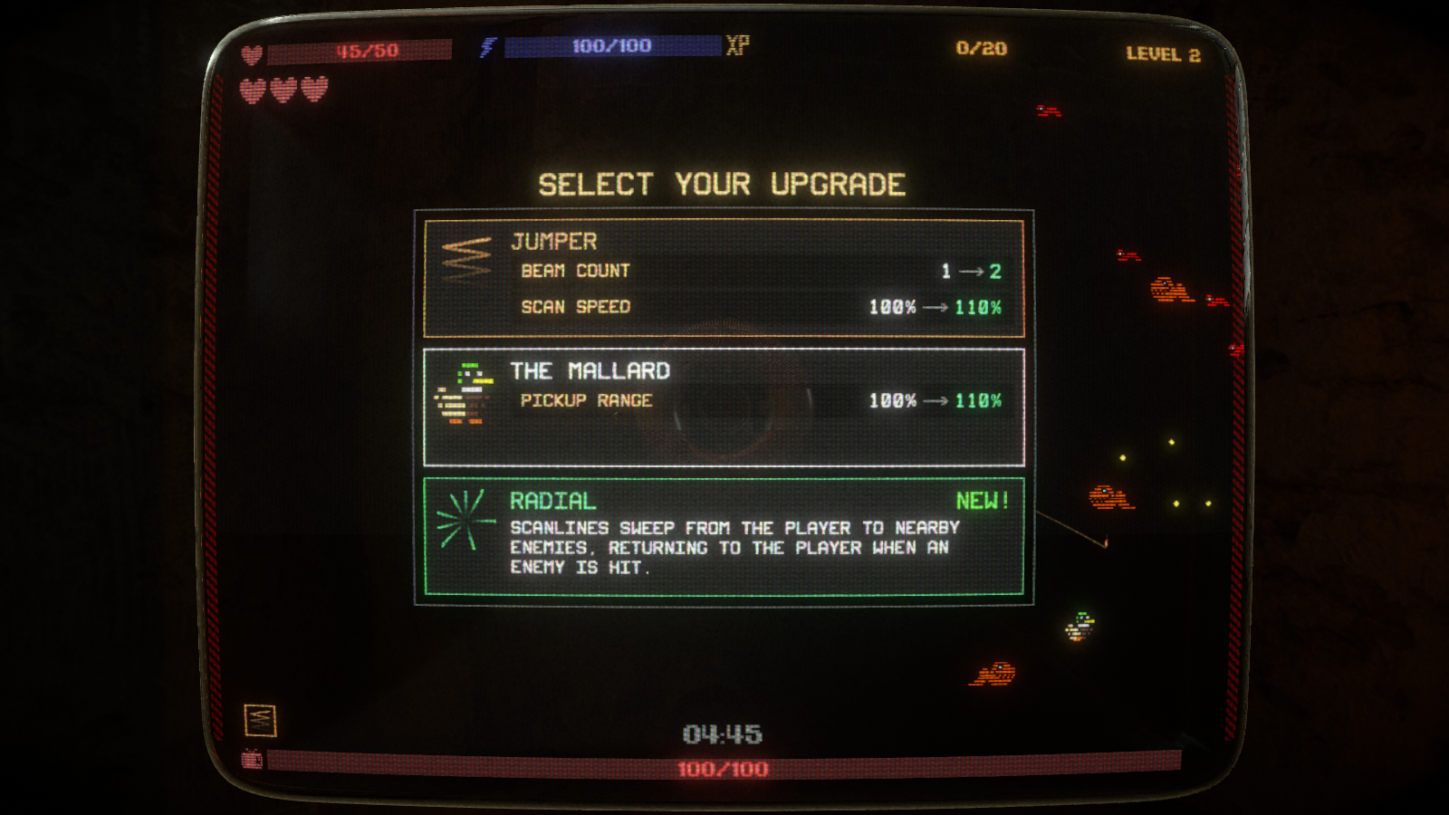 Survive swarms of enemies using an arsenal inspired by CRT TV scan-lines.